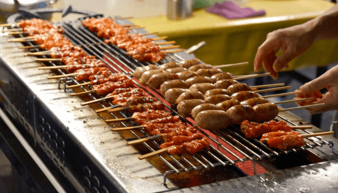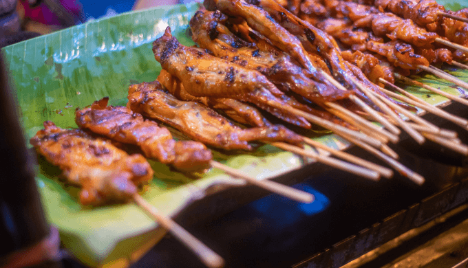 特徴:甘辛ダレに漬け込んだ豚串焼き。屋台でよく見かける人気メニュー。